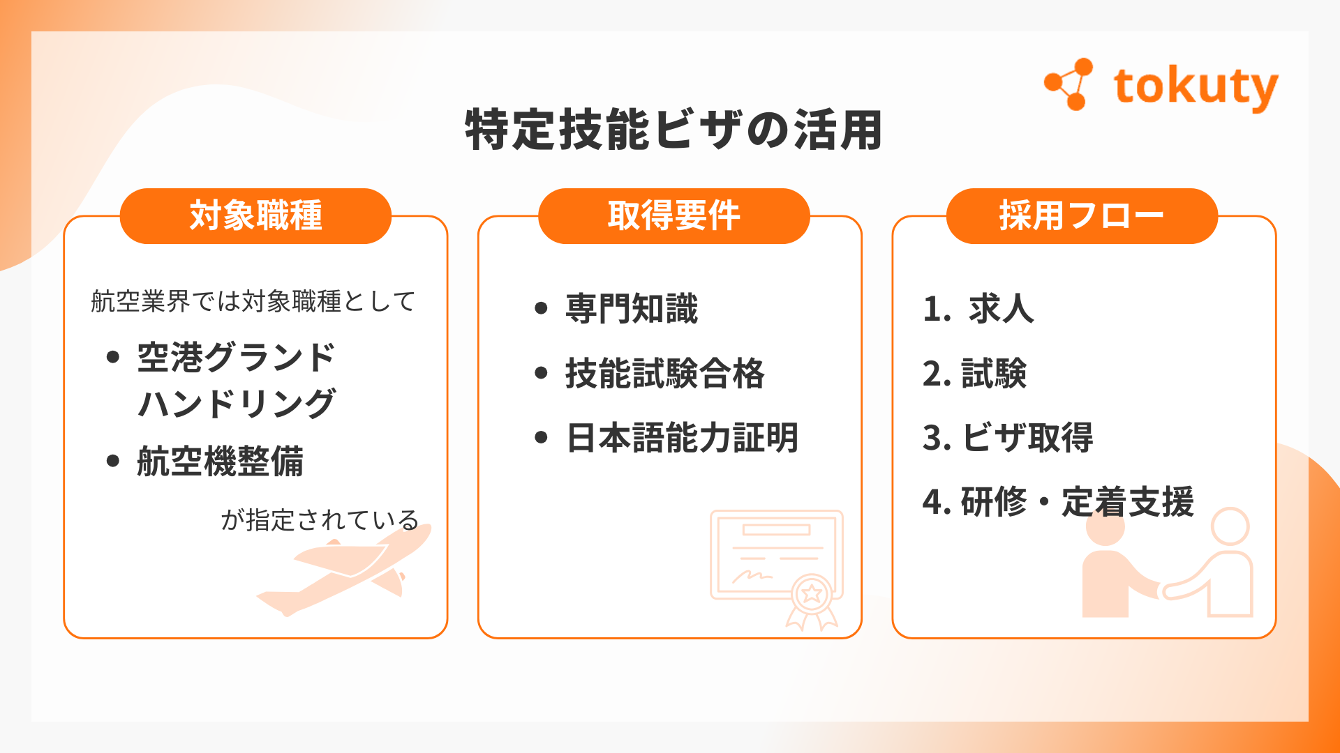 関連記事:航空業で特定技能外国人材の採用を考えている方へ!在留資格・特定技能の受け入れポイントや費用、注意点を解説!